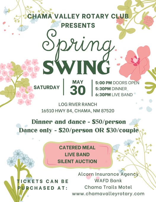 Tickets will be available soon at Alcorn Insurance, Washington Federal Bank and Chama Trails Motel!